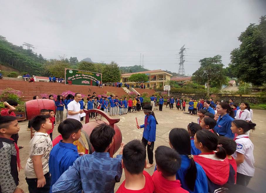 Học sinh tham gia hoạt động tập thể chào mừng ngày thành lập Đoàn